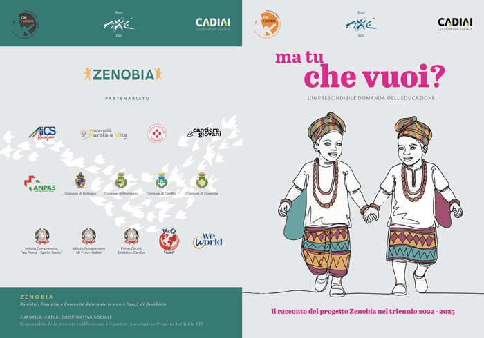 Zenobia – Bambini, famiglie e Comunità Educante in nuovi spazi di Desiderio (Italia, 2022-2025) è un progetto che nasce in risposta alle istanze del bando multiregionale Prima Infanzia 2020 – Comincio da zero, pubblicato nel 2020 dalla Fondazione Con i bambini nell’ambito del più ampio lavoro di questo ente finanziatore nel contrasto alla Povertà Educativa.